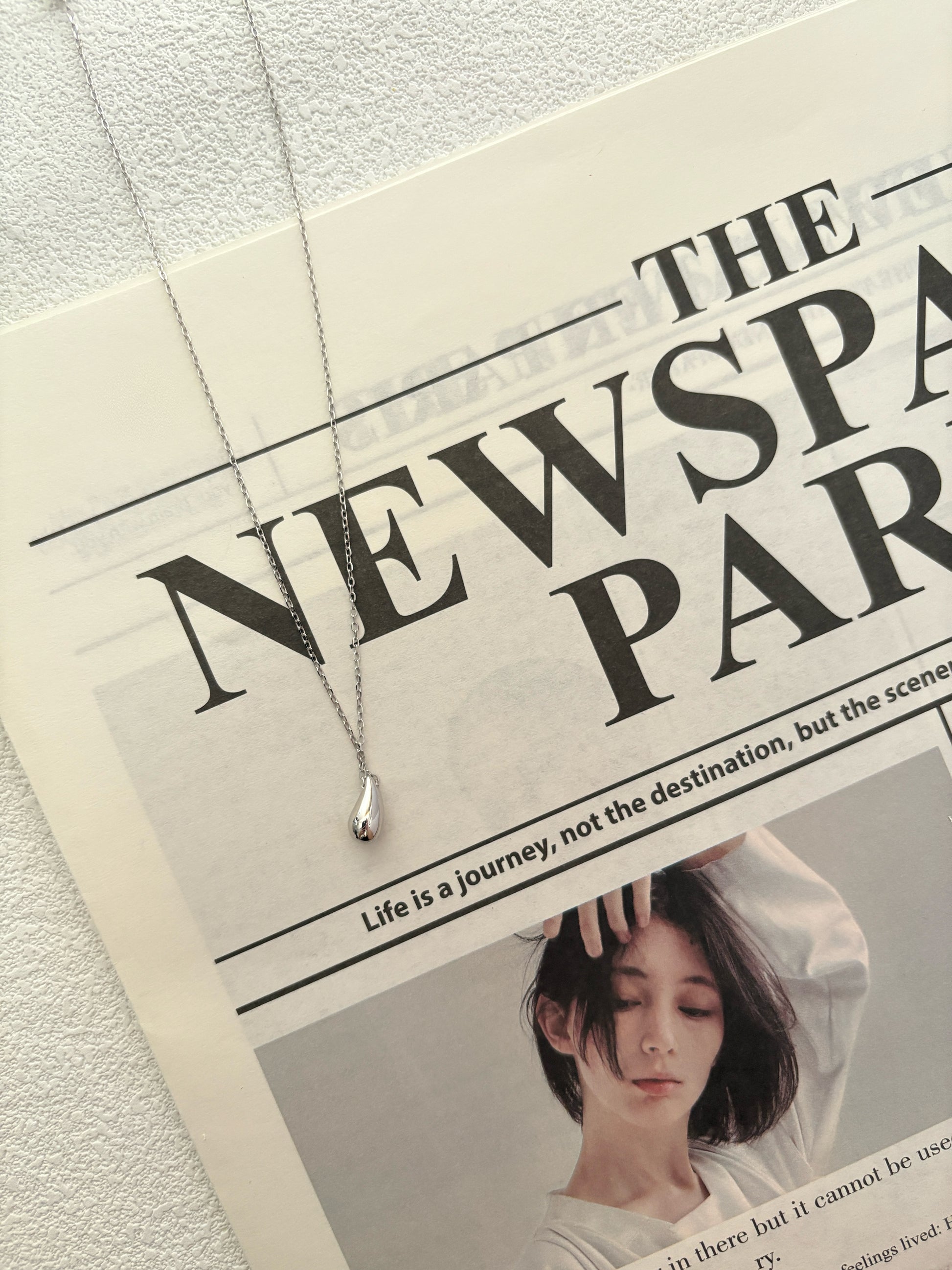 A polished teardrop charm drapes from a delicate cable chain like a fresh drop of dew—clean, modern, and effortlessly wearable every day. A minimalist essential.