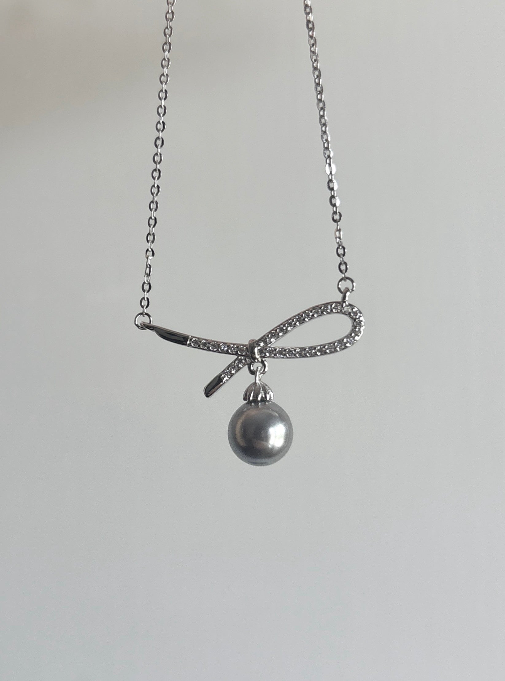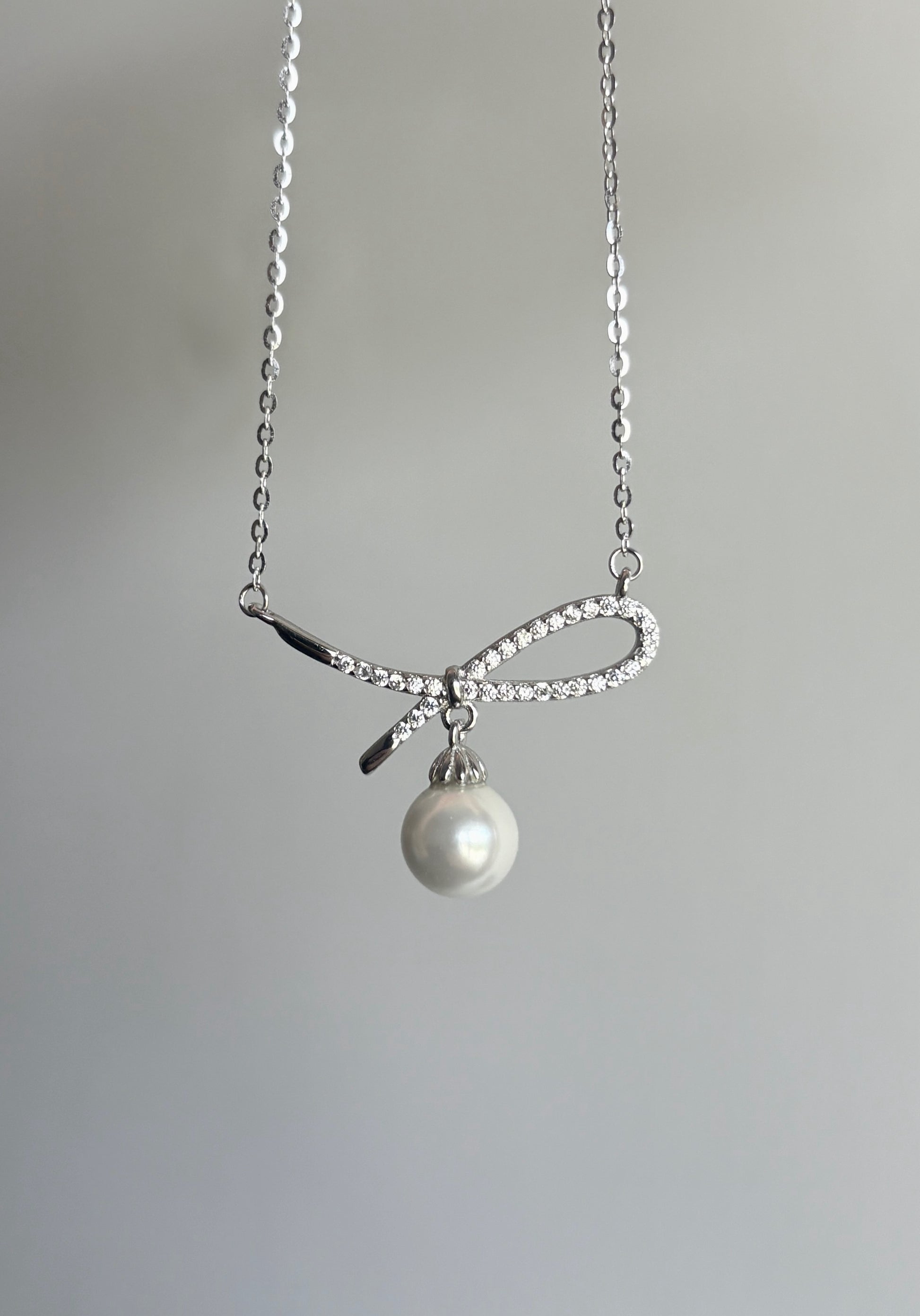 精緻的蝴蝶結吊墜,飾以精緻密鑲和拋光金屬,熠熠生輝,繫於一顆璀璨的珍珠(珍珠風格)吊墜上,隨著動靜輕輕搖曳。這款銀色項鍊柔美簡約,層次豐富,既可日常佩戴,亦可作為甜美的禮物。